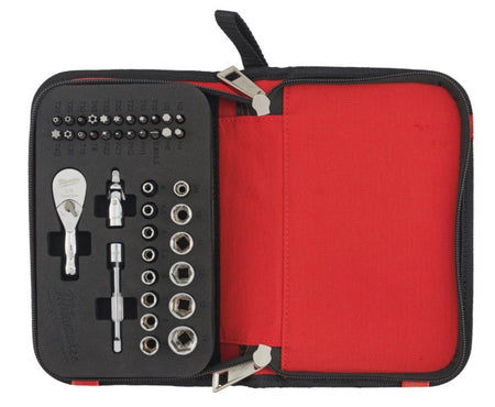 Juego compacto con carraca de 1/4" y accesorios