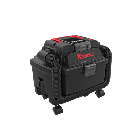 Su depósito de 10 litros permite trabajar durante más tiempo sin interrupciones, mientras que el sistema Bluetooth I-Connect conecta automáticamente con otras herramientas Kress para mantener el área de trabajo siempre limpia.